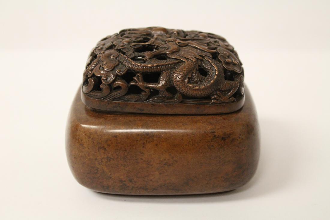 SoldChinese Bronze Covered Censer with Dragon19th cen, measures 11.5" in height and 12" wide; Provenace: from a Northeast Coast CollectionSee Sold Price