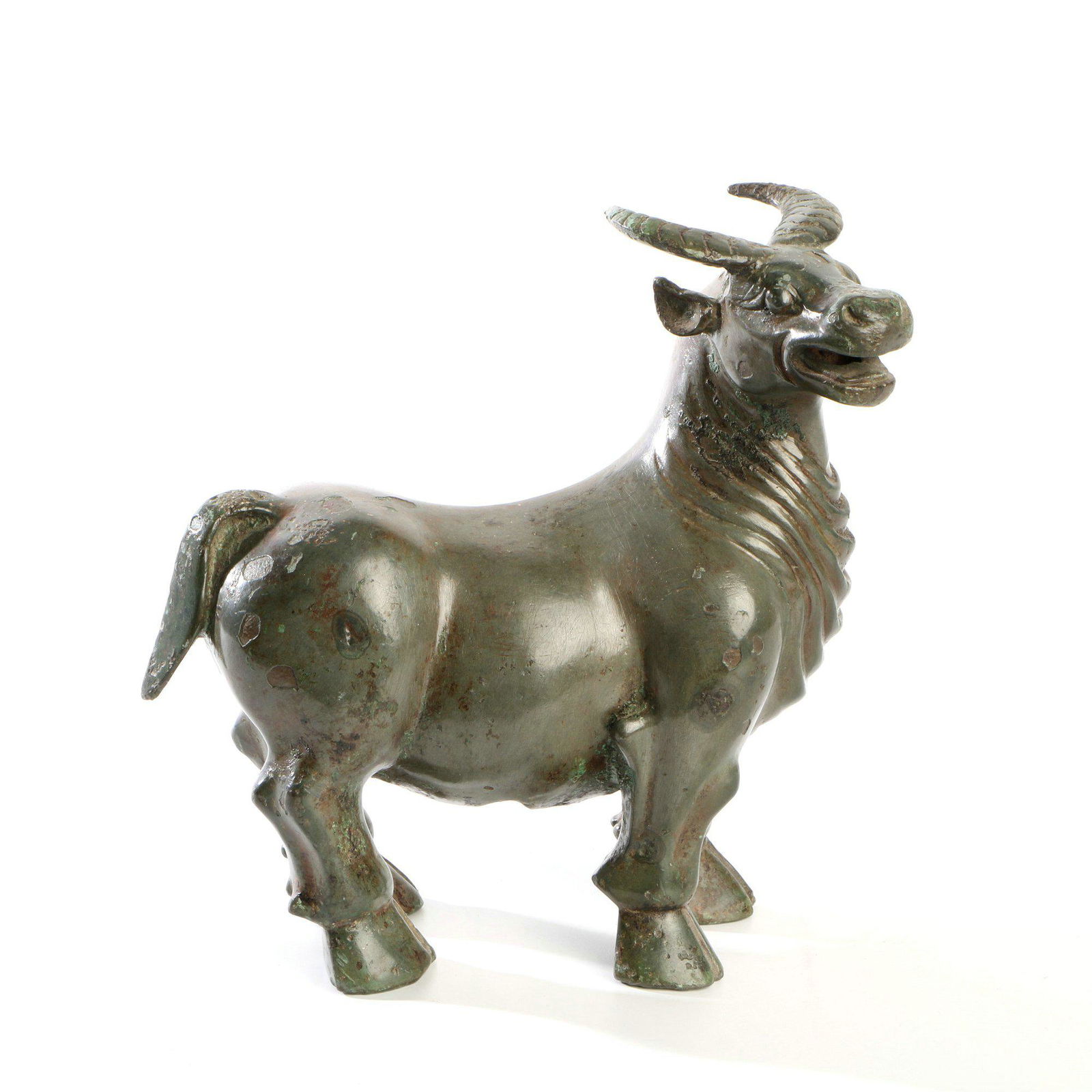 Antique Bronze Inscribed Ox Statue