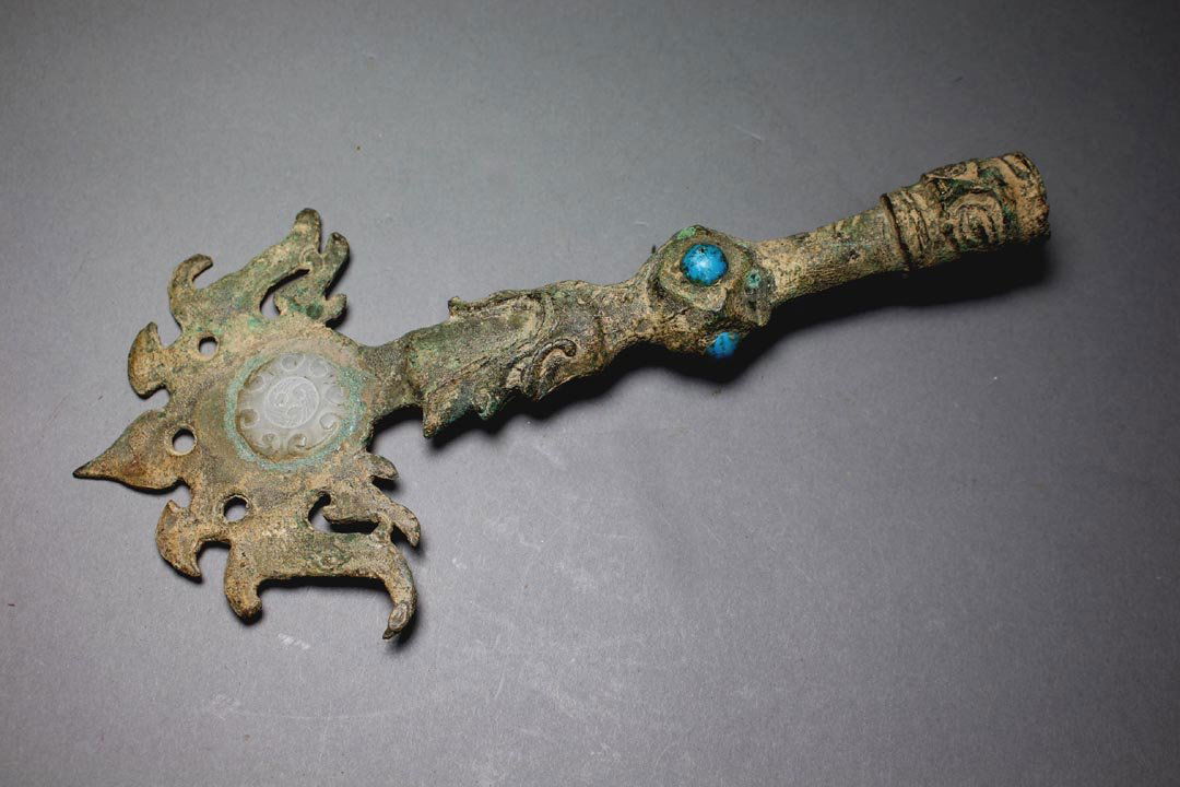 Archaic Style Bronze and Jade Ornamental Staff Head3 days LeftRetro Asian Bronze Scepter Turquoise Fengshui11 hrs LeftDURING THE WARRING STATES PERIOD, COPPER INLAID WITH TURQUOISE RITUAL VESSELS AND JADE KNIVES6 days LeftBuddhist 17th C. Tibetan BRONZE Battle AXE Entwined Mythic Figures & Remnants of GildingMar 28, 2026Luristan Bronze Dagger with Lunar Pommel6 days LeftLarge Chinese Sino-Tibetan Bronze Vajra195 Lots AwayChinese Yellow Hardstone Carved RuyiMar 05, 2026A MAGNIFICENT AND HIGHLY IMPORTANT GOLD-INLAID AND TURQUOISE-SET BRONZE SWORDWARRING STATES PERIOD22 hrs LeftTibetan Gilt Bronze Ritual Kartika KnifeMar 07, 2026Antique Indian Brass Zoomorphic-Hilt Dagger / KnifeMar 14, 2026Qing Chinese Tibetan Bronze Religious ScepterFeb 28, 2026Antique Chinese Sheep Head Bronze Dagger OrnamentMar 10, 2026A MAGNIFICENT AND HIGHLY IMPORTANT IMPERIAL GOLD AND SILVER-INLAID SABER (YAODAO), 'TU-MANG'MARK AND22 hrs LeftA MAGNIFICENT GILT-BRONZE AND CLOISONNÉ ENAMEL 'RUYI' SCEPTERQING DYNASTY, QIANLONG PERIOD22 hrs LeftAntique Style Chinese Bronze Lucky Ruyi Scepter11 hrs LeftAN EXTREMELY RARE GREEN AND BLACK JADE HALBERD BLADE (GE), EASTERN ZHOU DYNASTY, WARRING STATESMar 12, 2026