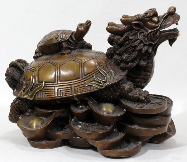 CHINESE BRONZE TURTLE WITH DRAGON HEAD,