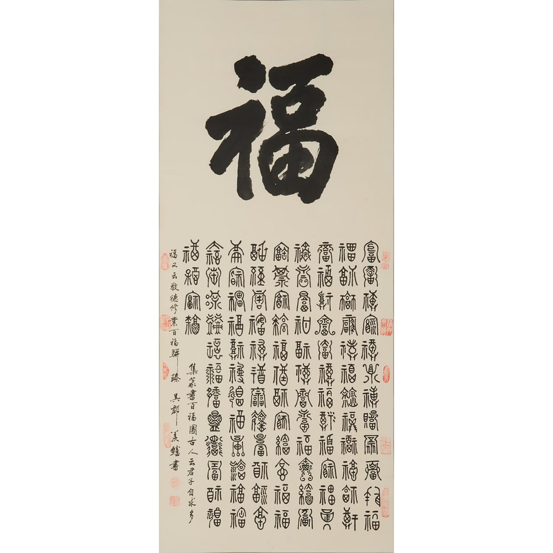 Chinese Calligraphy Scroll, 'Fu' Symbol