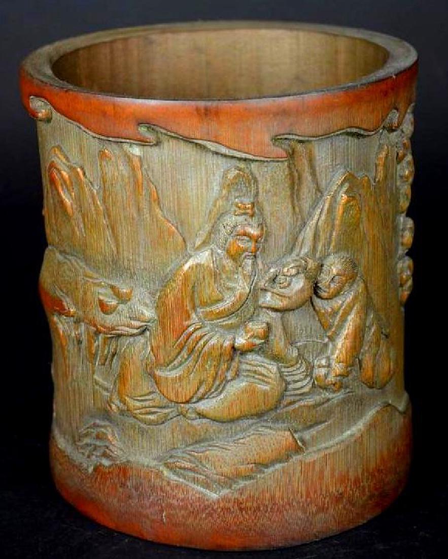 A BAMBOO-ROOT CARVED BRUSH POT WITH "VISITING FRIENDS" SCENETop Notch Collections4.4(56)$2,0003 days Left