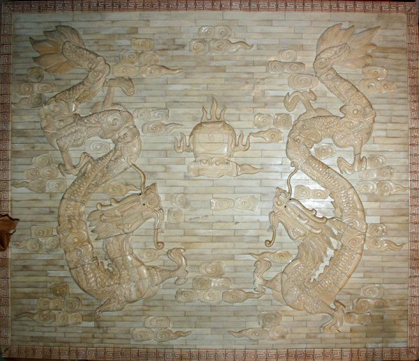 CHINESE CARVED BONE TWO SIDED PANEL, 48" X 39"