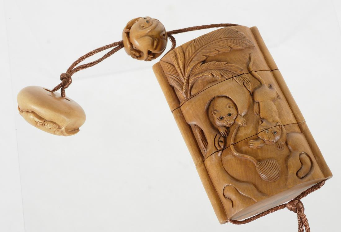 Chinese Carved Cat Inro Signed
