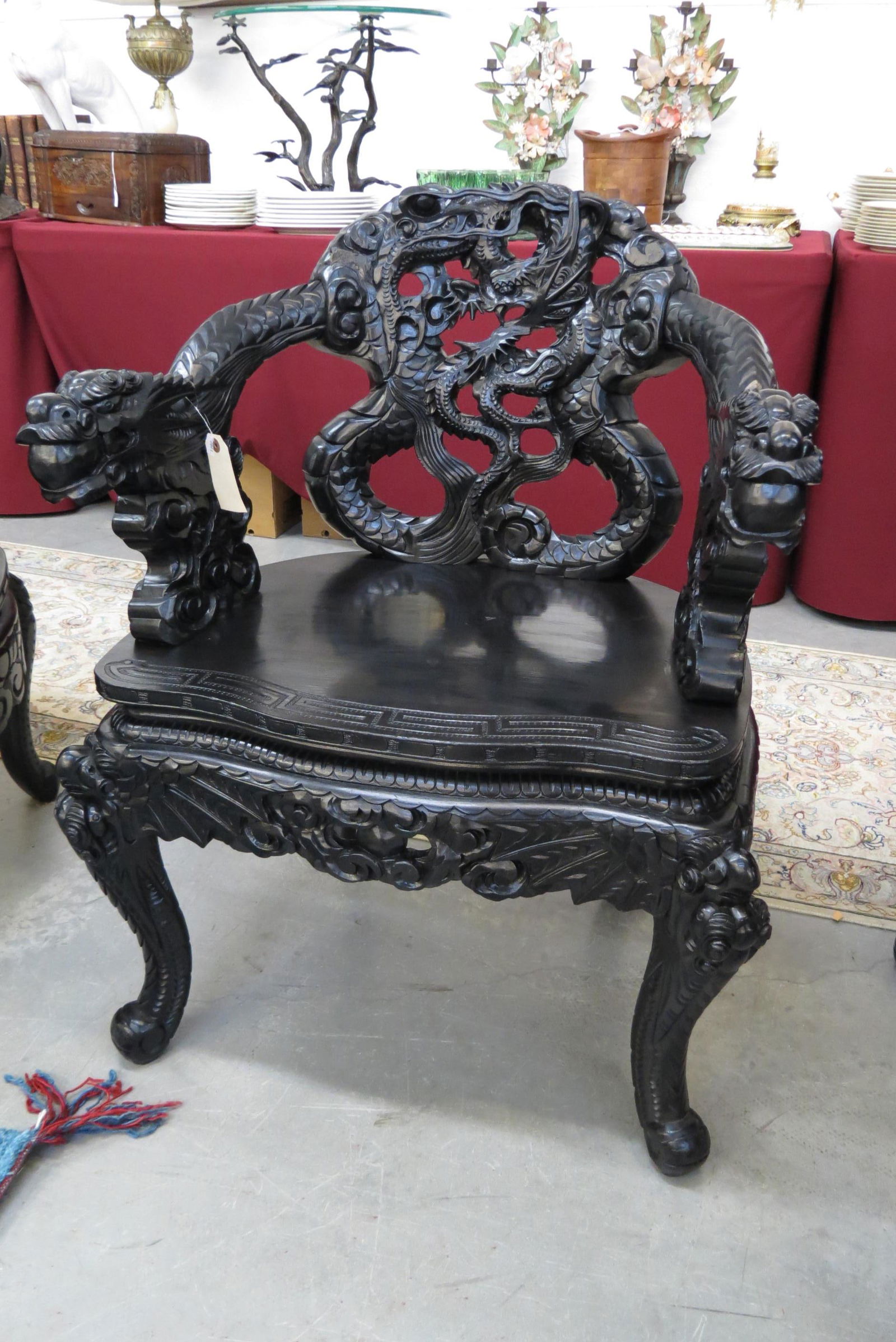 Vintage Chinese Carved Wood Horseshoe Back Chair (C)324 Lots AwayAntique Chinese Deeply Carved Rosewood Figural Queen Chair with Dragons C1920Mar 07, 2026Antique Chinese Deep Carved Rosewood Figural King Throne Chair with Dragons 1920Mar 07, 2026Early 1900's Japanese Carved Dragon side chair, Japanese Meiji period, elaborate carved entangled2 days LeftEarly 1900's Japanese Carved Dragon Chair, Japanese Meiji period, elaborate carved dragons arm rest,2 days LeftHand Carved Oriental Teak Chair4 days LeftHand Carved Black Stained Oak Gothic Revival Side Chair w/ Wicker SeatMar 06, 2026Huanghuali Wood Carved Dragon Pattern Chair4 days LeftA pair of richly carved Chinese hongmu 'Dragon' chairs with cane seats, 19th C.Mar 18, 2026Antique Chinese Carved Wood Emperor Throne Chair6 days LeftCHINESE HARDWOOD HORSESHOE ARMCHAIRMar 07, 2026Decorative Vintage Chinese Rosewood Side Arm Chair4 days LeftAntique Chinese Black Lacquer Carved Dragon DeskMar 03, 2026Chinese, Dragon chairMar 05, 2026ANTIQUE VICTORIAN CARVED WOOD CHINOISERIE SIDE CHAIRMar 07, 2026Chinese Export Carved Wood Side Chair, 19th C.May 07, 2026
