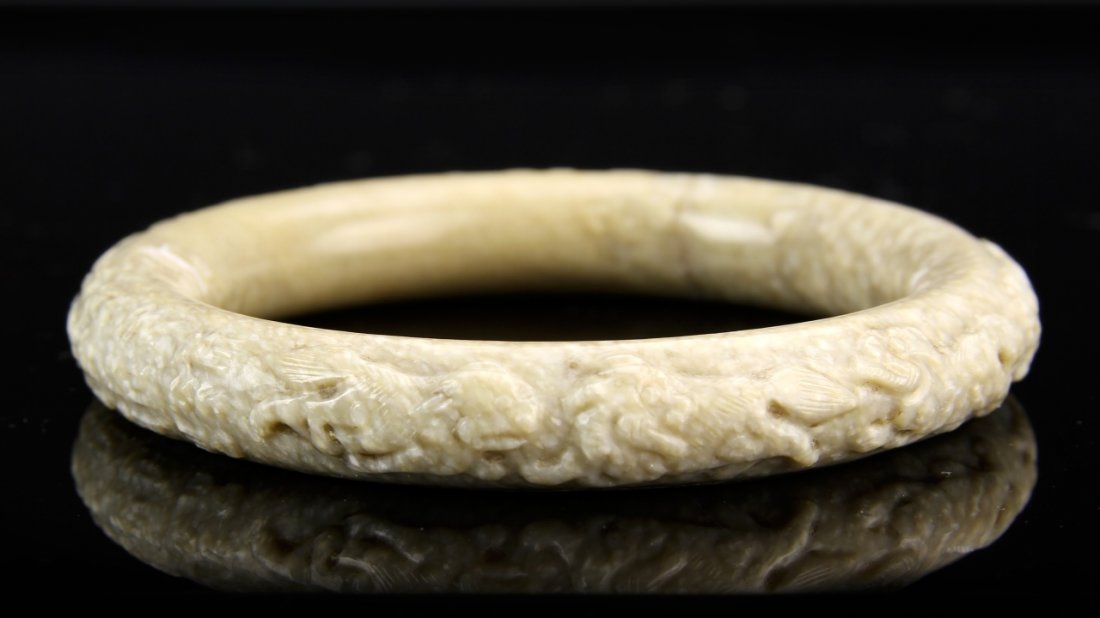 Chinese Carved Chicken Bone Jade Bangle