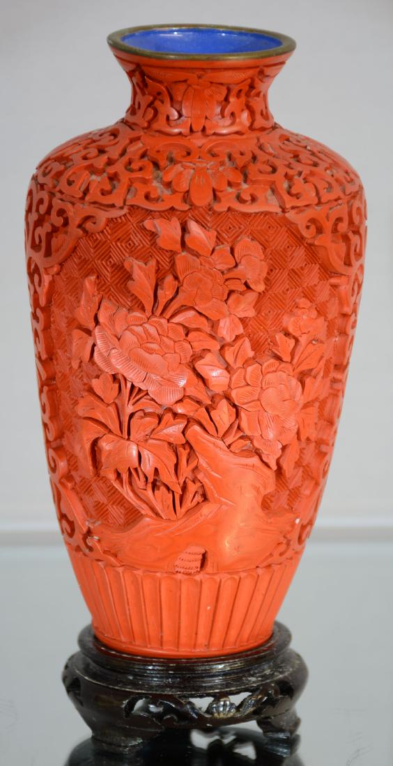A Rare Carved Red Lacquer Flower Pattern Vase