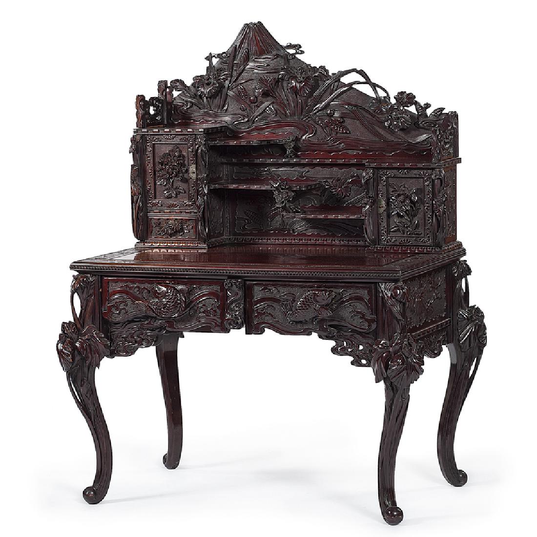 SoldChinese carved desk. ht. 49 in., wd. 45 in.Chinese carved desk. ht. 49 in., wd. 45 in.See Sold Price
