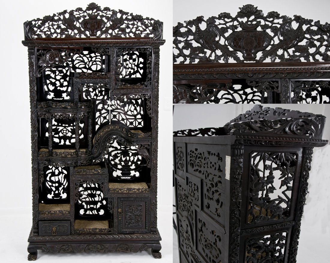 A Pair of Thai Gilt Wood Display CabinetsFeb 26, 2026A Pair of Chinese Zitan Curio Cabinets with Openwork Foliate CarvingsMar 08, 2026A pair of Chinese rosewood miniature 'dragon' cabinets2 days Left2 Chinese CabinetsMar 03, 2026A carved lacquered cabinet, 20th century, Chinese,5 days LeftChinese Hardwood Table CabinetFeb 26, 2026Antique Chinese Rosewood Etagere / Tea CabinetMar 07, 2026An antique English chinoiserie wall cabinet with ornately carved pagodaMar 03, 2026Pair of Chinese Lift-Top Chests / End TablesMar 03, 2026Pair of Zitan Wood Small Cabinets with Dragon Patterns3 days LeftA Pair of Rare Zitanwood Inlaid Gems Flower and Bird Pattern CabinetsMar 15, 2026Pair Antique Chinese Carved Elmwood Side CabinetsFeb 28, 2026EARLY 19TH C. CHINESE DISPLAY ETAGERE3 days LeftA Exquisite Boxwood CabinetMar 13, 2026A Pair of Huanghuali Treasure Cabinets Inlaid with Flower, Bird and Pine-Crane Longevity MotifsMar 04, 2026EXQUISITE ANTIQUE CHINESE HAND-CARVED WOOD THRONE SCREEN ROOM DIVIDER DECORATION, 10 feet x 7 feet2 days Left
