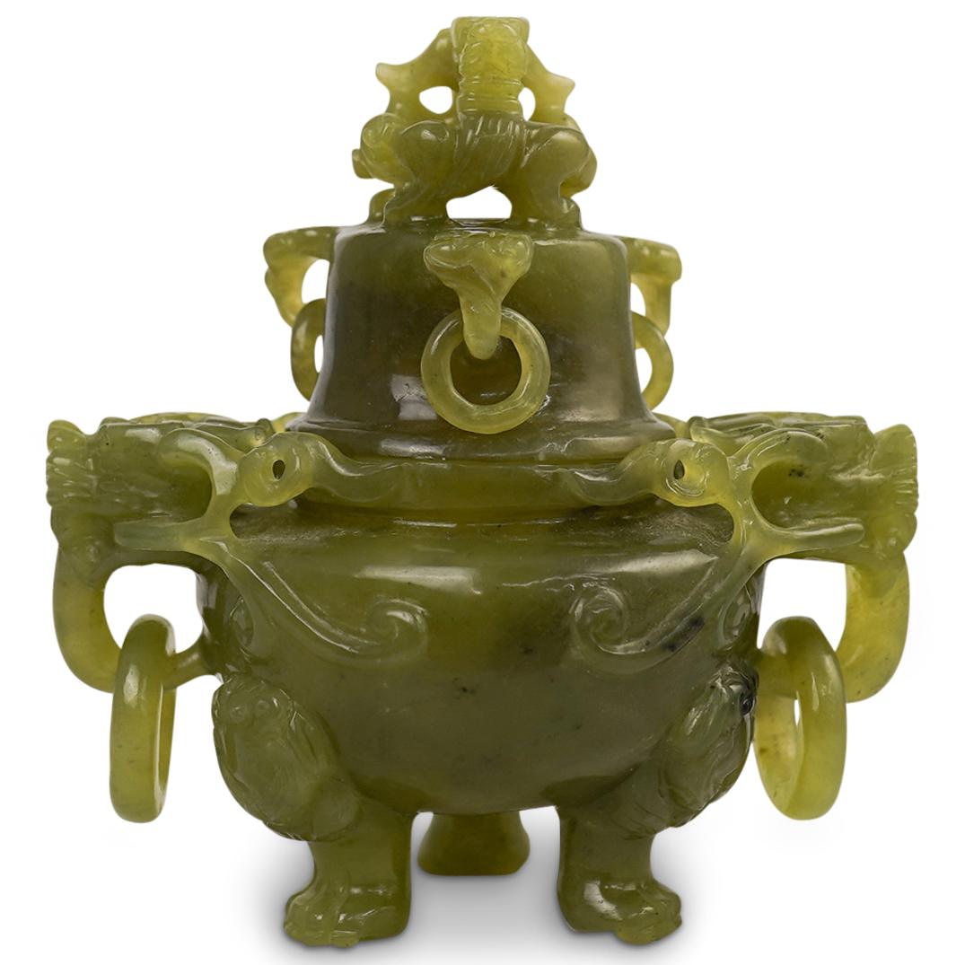 Chinese Carved Jade Dragon Censor