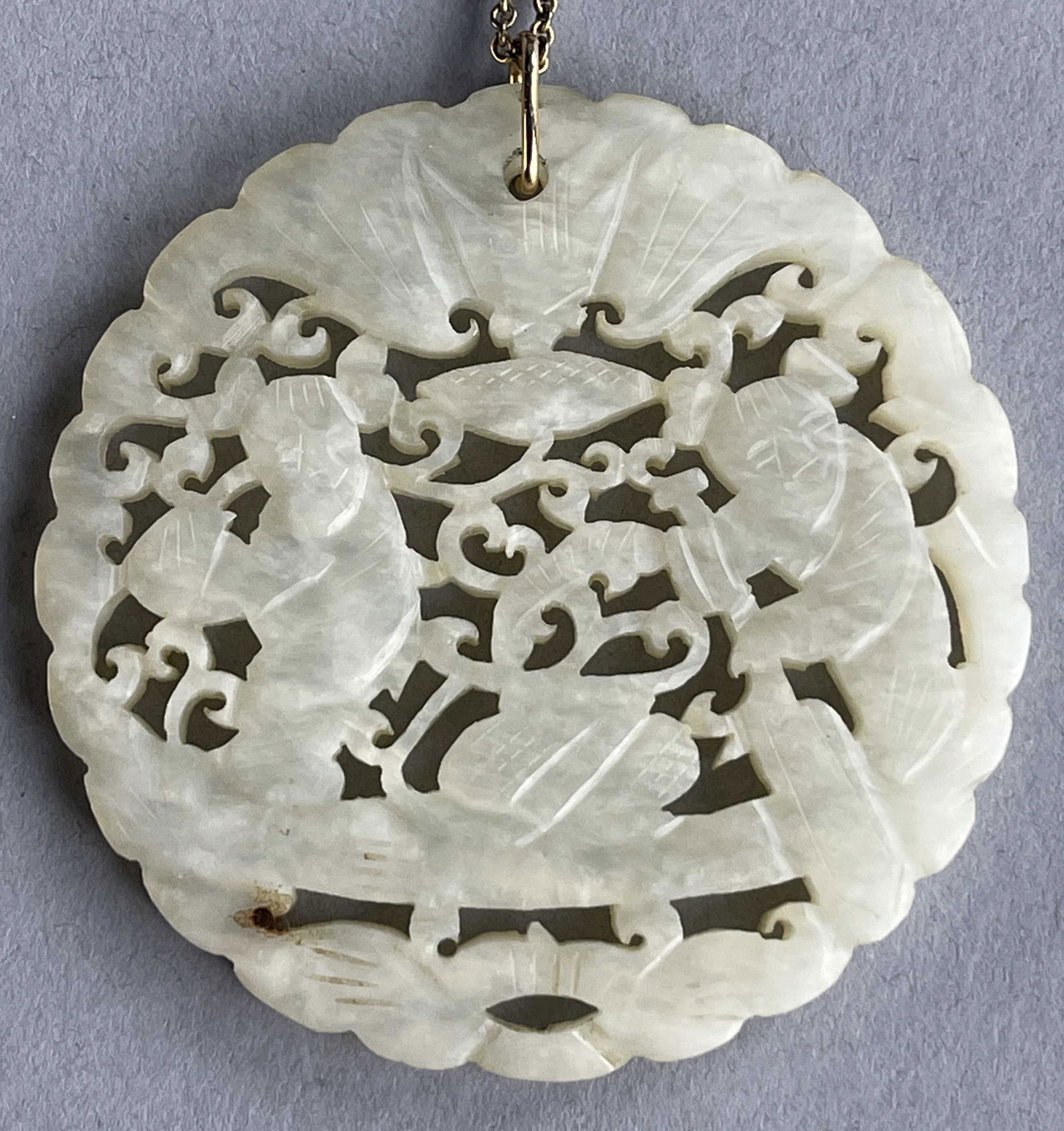 APPLE JADE PENDANT GOLD BAIL HAND CARVED C.1940Chinese White Jade Articulated Dragon Boat PendantMar 22, 2026Chinese Vintage Hand Carved Jade Necklace Pendant11 hrs LeftChinese Carved Blessing FU White Jade Pendant9 hrs LeftA Chinese Archaistic Jade Openwork Disc, 20th Century, 35YC2 days LeftA CHINESE ARCHAISTIC CARVED WHITE JADE DISC BIMar 08, 2026Hetian jade amulet9 hrs LeftChinese Jade Hawk Eagle Bear PendantMar 12, 2026Antique Chinese Finely Carved Jade Mounted Buckle11 hrs LeftHetian Jade Pendant "Immortal Boys Gathering Wealth"10 hrs LeftAn Exquisite White Jade Figure and Story Pattern Pendant,with Poem5 days LeftEstate Chinese Jade Carved Dragon PendantMar 20, 2026Chinese Carved Natural Green Jade Longevity Round Pendant2 days LeftA Chinese Hetian Jade Openwork Beast Plaque, 20th Century, 49FH2 days LeftA Chinese Hetian Jade Cabbage Carving, 20th Century, 13YA2 days LeftA PALE CELADON JADE 'CHILONG' PENDANT, EASTERN ZHOU TO WESTERN HANMar 12, 2026