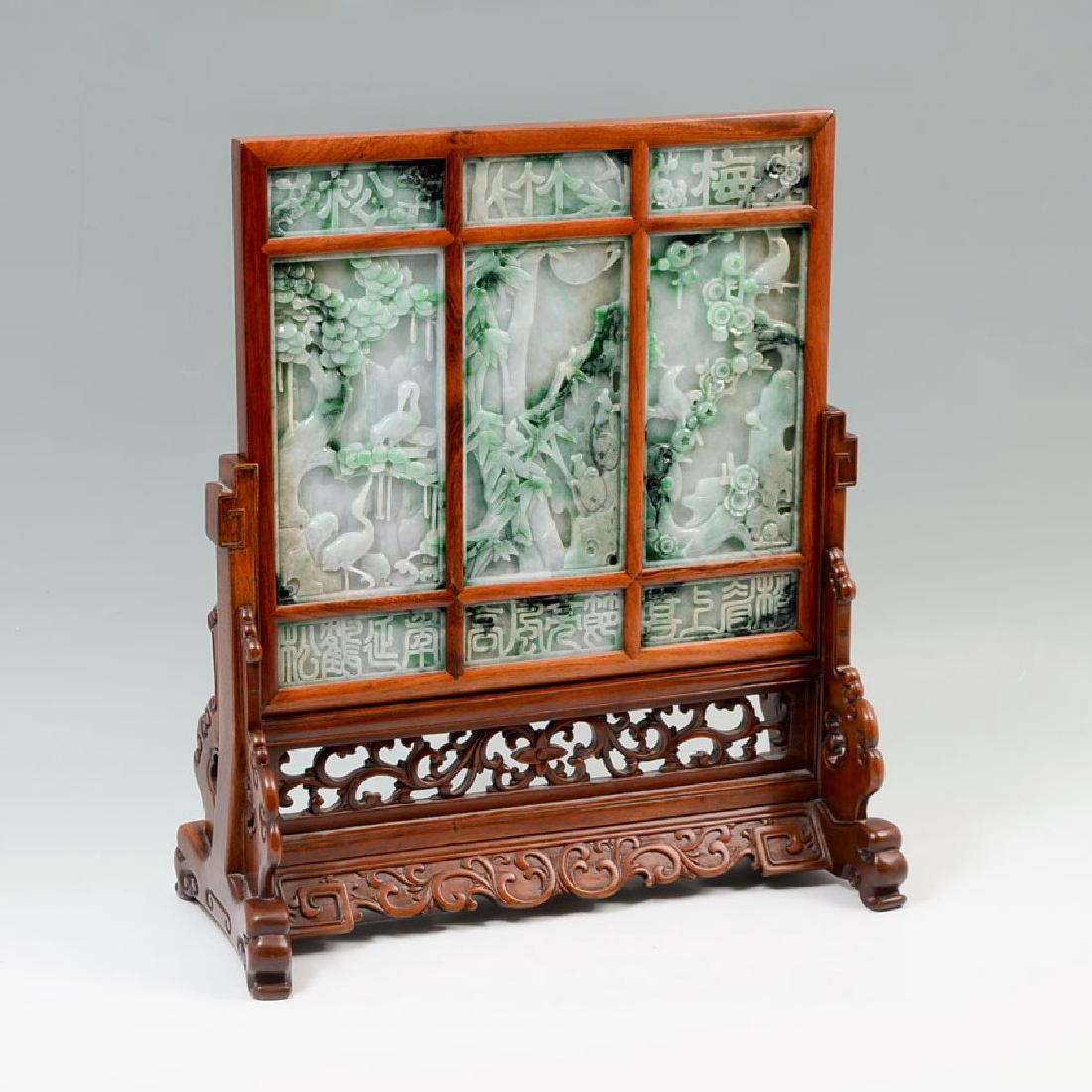 CHINESE CARVED JADEITE TABLE SCREEN