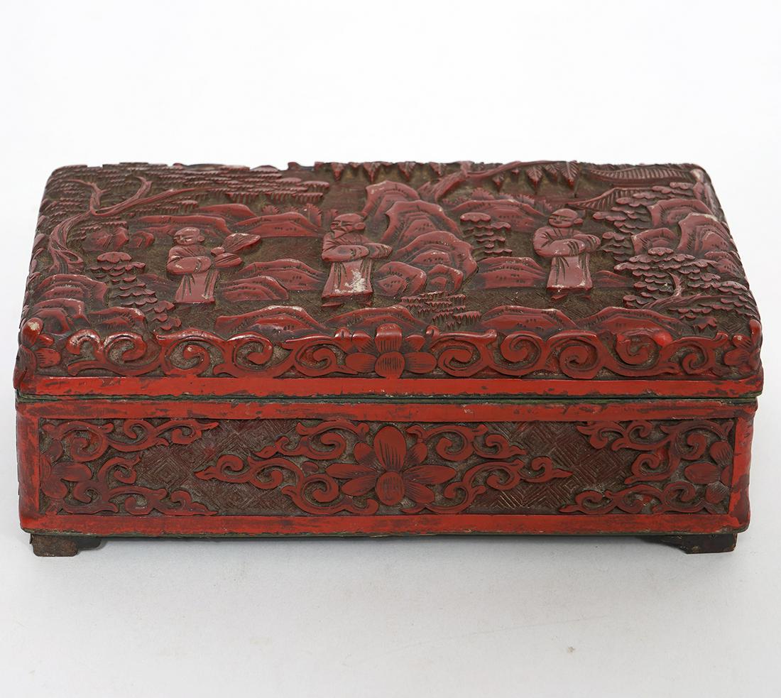 Chinese Lot of 3 Carved Cinnabar Items2 days LeftChinese Red Cinnabar Carved Box with Figurines and LandscapeFeb 28, 2026Chinese Cinnabar Carved Lacquer Round Covered Box Dia. 10"3 days LeftA CARVED CINNABAR LACQUER DRAGON BOX WITH COVERMar 01, 2026Chinese Cinnabar BoxFeb 24, 2026Chinese Cinnabar Hexagonal Box with Peony MotifFeb 28, 2026A CARVED CINNABAR LACQUER CHESS BOX WITH COVERMar 01, 2026Qing Chinese Cinnabar Carved BoxFeb 28, 2026Chinese Cinnabar Box6 days LeftChinese Old Cinnabar Large Box2 days LeftAn Exquisite Carved Red Lacquer Flower Dragon Pattern BoxMar 04, 2026An Exquisite Carved Red Lacquer Flower Pattern Cover BoxMar 11, 2026Two Chinese Cinnabar BoxesFeb 24, 2026A CARVED RED LACQUER COVERED BOX WITH FIGURATIVE STORY DESIGNMar 14, 2026Chinese Carved Cinnabar Lacquer Covered BoxFeb 27, 2026An Exquisite Carved Red Lacquer Bats and Dragon Pattern Cover BoxFeb 28, 2026