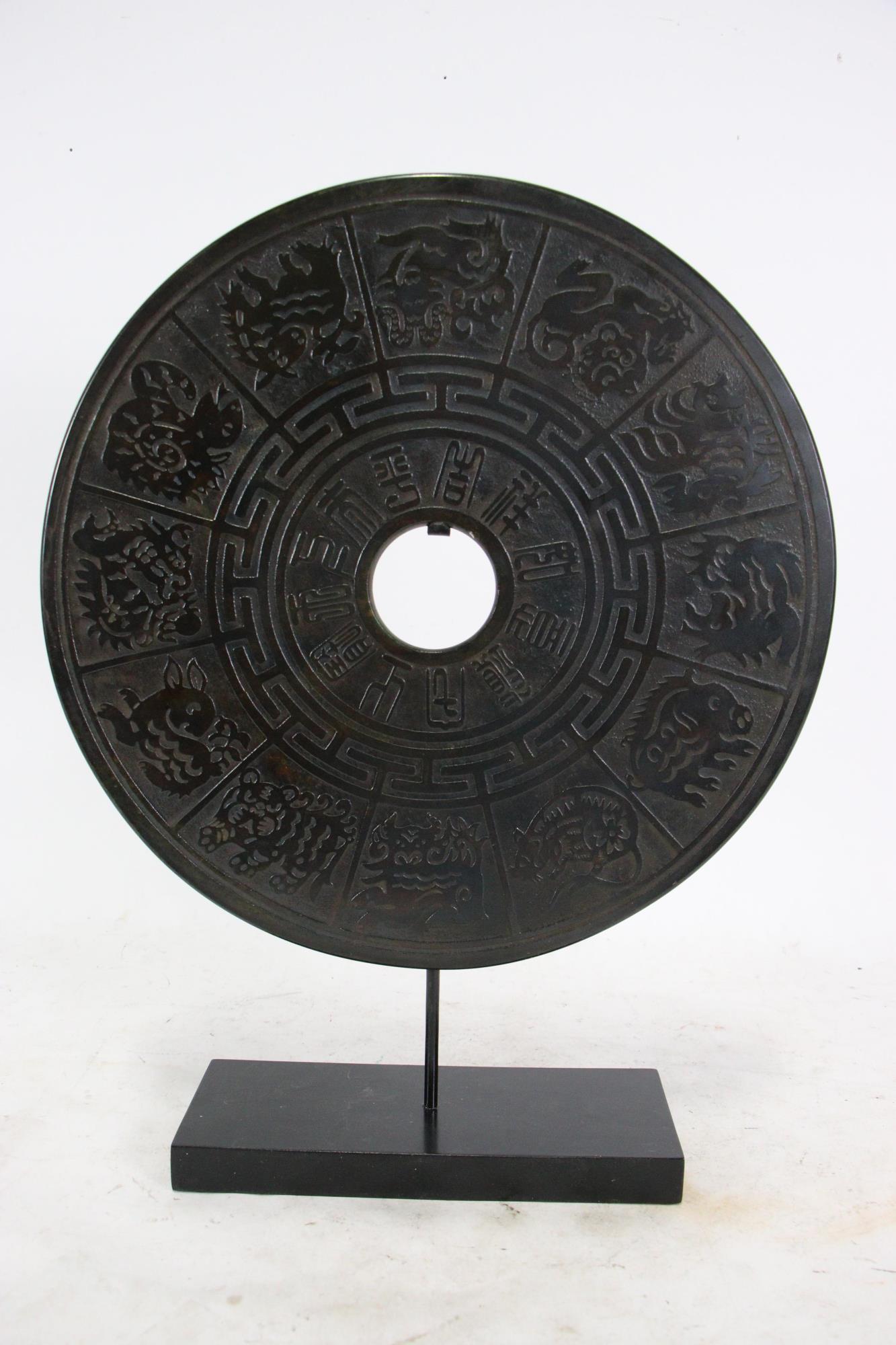 CHINESE CARVED STONE DISK ON STAND