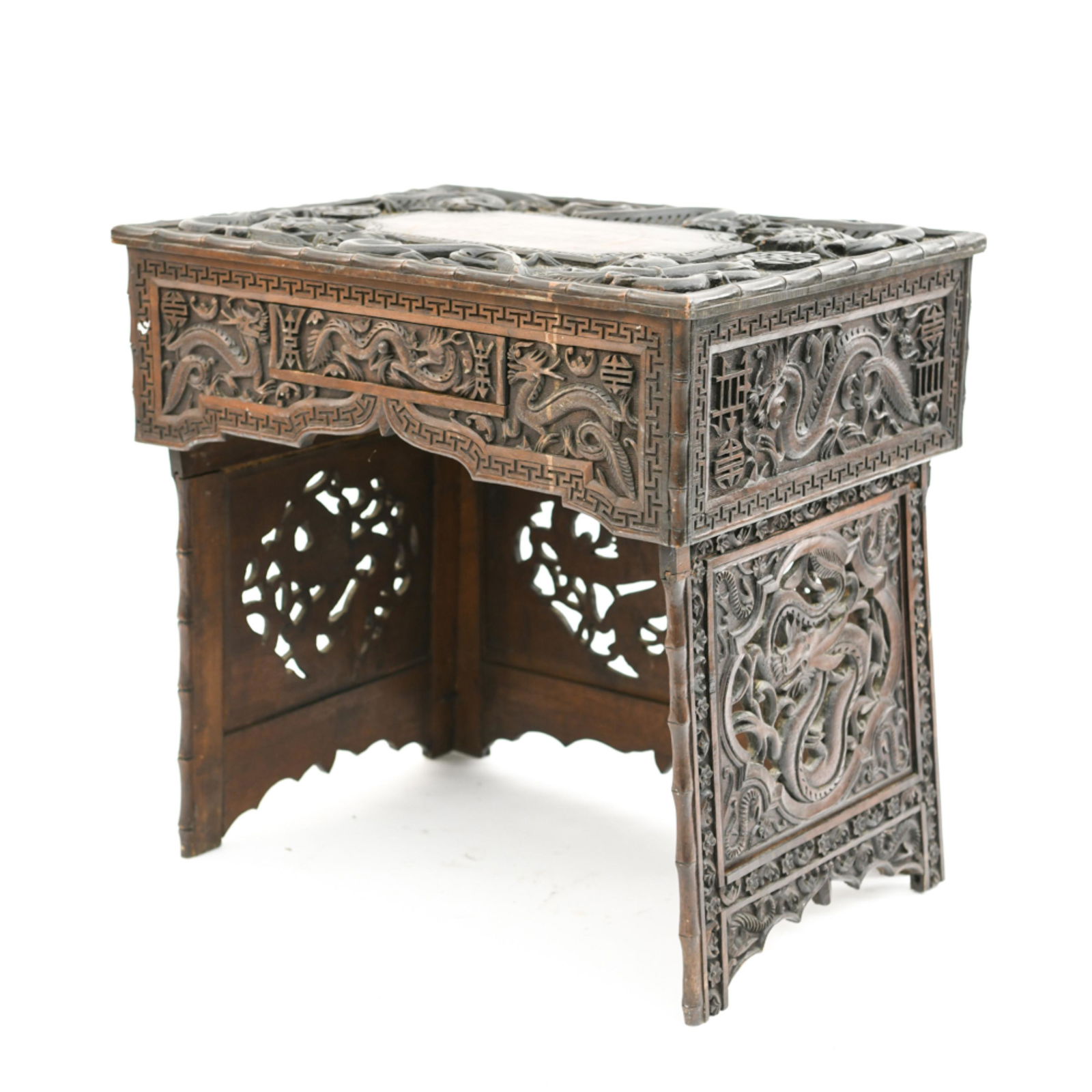 Chinese Carved Table.Feb 28, 2026Antique Japanese Carved Dragon Table.Feb 28, 2026Chinese Hardwood & Marble Pedestal Table, 19th C.Apr 14, 2026Continental Embossed Copper and Wood Side Table2 days LeftChinese Carved Wood Altar Table2 days LeftAntique Chinese carved hardwood Hongmu altar table with rounded drawers and reticulated dragon motif4 days LeftA Chinese carved hardwood altar tableMar 03, 2026Chinese Clawfoot Side Table or Plant Stand, Carved Rosewood4 days LeftAntique Chinese CAMPHOR WOOD CHEST with Dragon Relief4 days LeftA MAGNIFICENT AND MONUMENTAL HUANGHUALI 'DRAGON AND PHOENIX' ALTAR TABLE17TH CENTURY, LATE MING TO5 days LeftTALL CHINESE CARVED WOOD TABOURET PEDESTAL PLANT STAND WITH MARBLE INSET TOP4 days LeftChinese Altar Table5 days LeftChinese Hardwood and Marble Pedestal TableMar 26, 2026Chinese Marble Inset Rosewood Pedestal TableFeb 26, 2026Indian carved wood end tableMar 03, 2026Chinese Carved Rosewood & Marble Pedestal Stand4 days Left