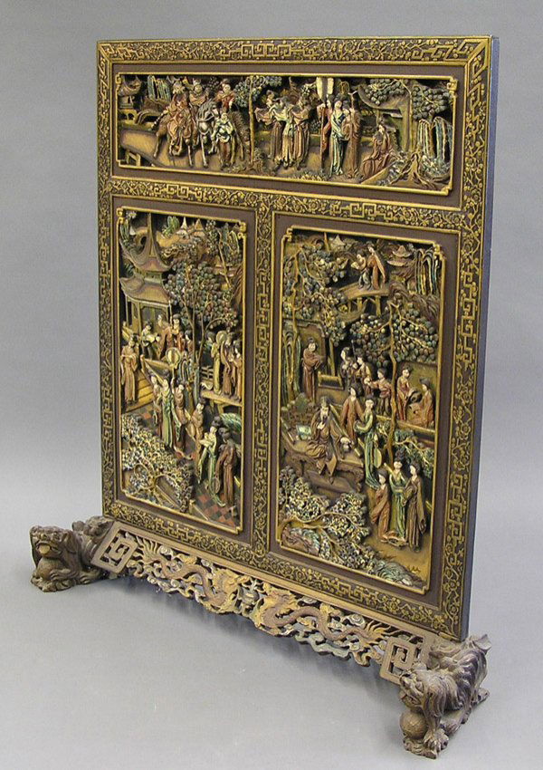 A lot of seven Chinese gilt carved wooden various decorated bas-relief wall sculptures5 days LeftCHINESE FOUR PANEL LACQUERED SCREEN, 19TH C.5 days LeftA Chinese four panel lacquered wood screenMar 03, 2026Pair of Chinese Polychrome Wood Carved PanelsFeb 28, 2026A Chinese gilt carved wooden wall plaque decorated with relief figures in a palace scene5 days LeftAntique Chinese Polychrome & Carved Wood Panel3 days LeftLARGE CHINESE CARVED & PARCEL-GILT RED LACQUER TABLE SCREEN, 35"H22 hrs LeftA Chinese Carved and Gilt Wooden Panel with Figures2 days LeftLarge Antique Chinese Carved Wood Dragon ScreenMar 03, 2026VINTAGE CHINESE CARVED GILTWOOD WALL PANELMar 07, 2026Panel China, early 20th Century80 Lots AwayA Large Chinese Huanghuali/ rosewood Folding Screen with Mother-of-Pearl Inlay, 4 Panels2 days LeftThree-panel folding screen in carved wood with leather panels, India, 19th century6 days Left19th Century Chinese Carved Four Panel ScreenMar 03, 2026Chinese Gilt Oval Wood Carved Wall HangingMar 05, 2026MONUMENTAL CHINESE BLACK LACQUER 12-PANEL FLOOR SCREEN, 107"H3 days Left