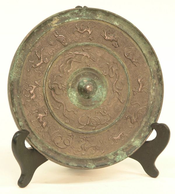 Han Dynasty Bronze Mirror with Animal PatternsMar 29, 2026Tang Dynasty Bronze Mirror with Four Divine Beasts PatternMar 29, 2026A VERY LARGE SILVERED 'PHOENIX AND BIRDS' OCTAFOIL BRONZE MIRROR, TANG DYNASTYApr 16, 2026Gilt-bronze mirror with inlaid jewels, before the Ming Dynasty7 days LeftA GRAPEVINE AND SEA-BEAST BRONZE MIRROR, TANG DYNASTY7 days LeftPre-Ming Dynasty, Gilded Bronze Mirror with Figure Story, Flowers and Birds7 days LeftPre-Ming Dynasty, Bronze Mirror of Teaching and Instructing7 days LeftAN INSCRIBED SILVERED BRONZE 'BEASTS AND ANIMALS' MIRROR, EASTERN HAN DYNASTYApr 17, 2026Han Dynasty Bronze Mirror Inlaid with Gold, Silver and JadeMar 21, 2026Pre-Qing Dynasty Inlaid Gold and Silver Hunting Scene Copper Mirror7 days LeftA Han Dynasty Cuojin silver turquoise bronze mirror6 days LeftPre-Ming Dynasty gilded copper hunting mirror7 days LeftBronze mirrors before the Ming Dynasty5 days LeftA Han Dynasty Cuo gold and silver turquoise bronze mirror7 days LeftA CIRCULAR BRONZE MIRROR WITH STANDARD PATTERN, HAN DYNASTY7 days LeftA bronze mirror.Apr 08, 2026