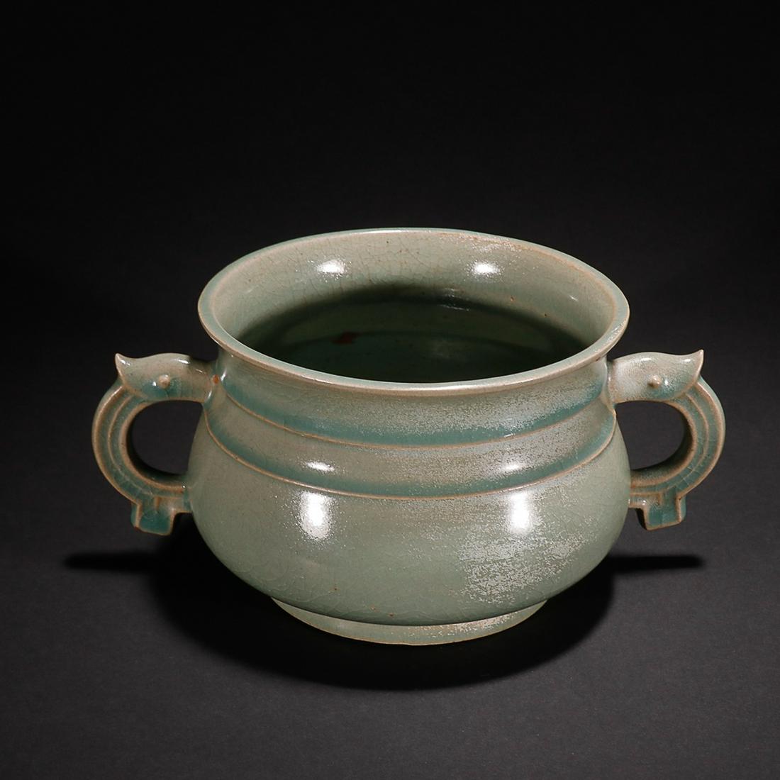 CHINESE CELADON-GLAZED HANDLED CENSER