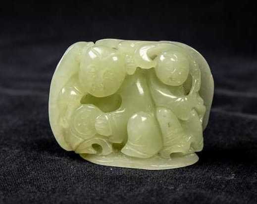 CHINESE CELADON HUED WHITE JADE STUDY