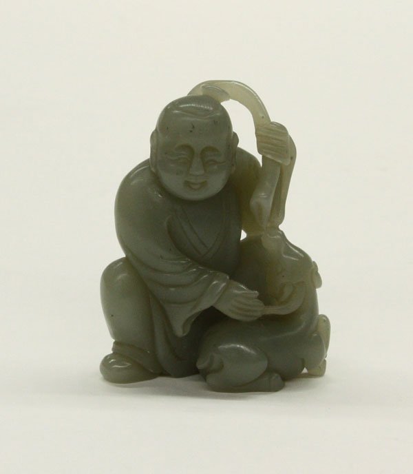 Chinese Celadon Jade Child with Ram