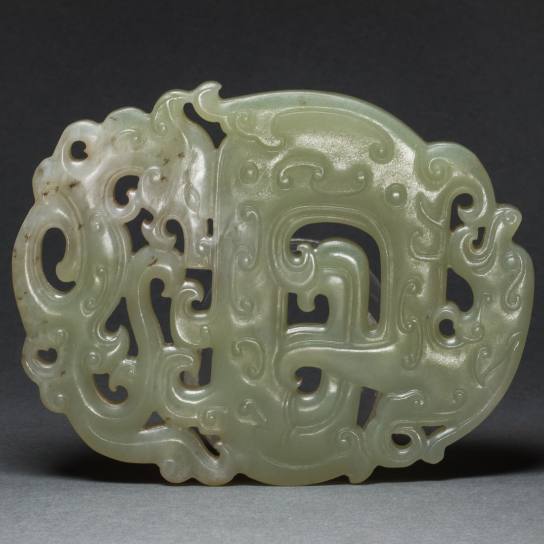 Chinese celadon openwork jade 'dragon' pendant