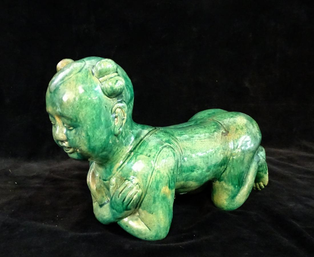 CHINESE CERAMIC GREEN KNEELING FIGURE