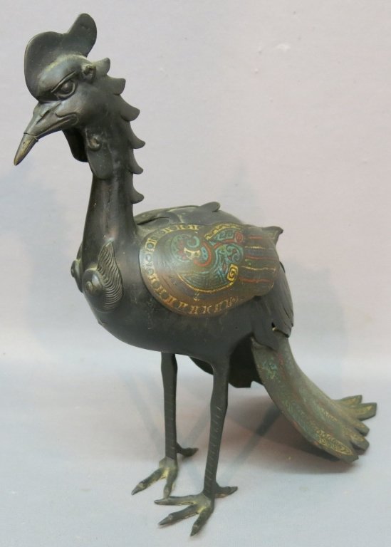 CHINESE CHAMPLEVE PEACOCK FORM CENSOR