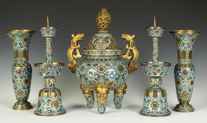 Chinese Cloisonné 5-Pc. Garniture Set