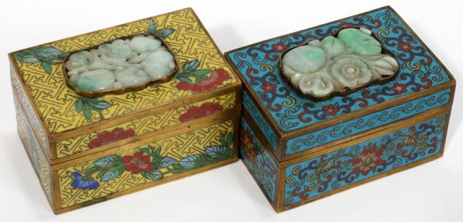 CHINESE CLOISONNÉ BOXES WITH INSET JADE, TWO,