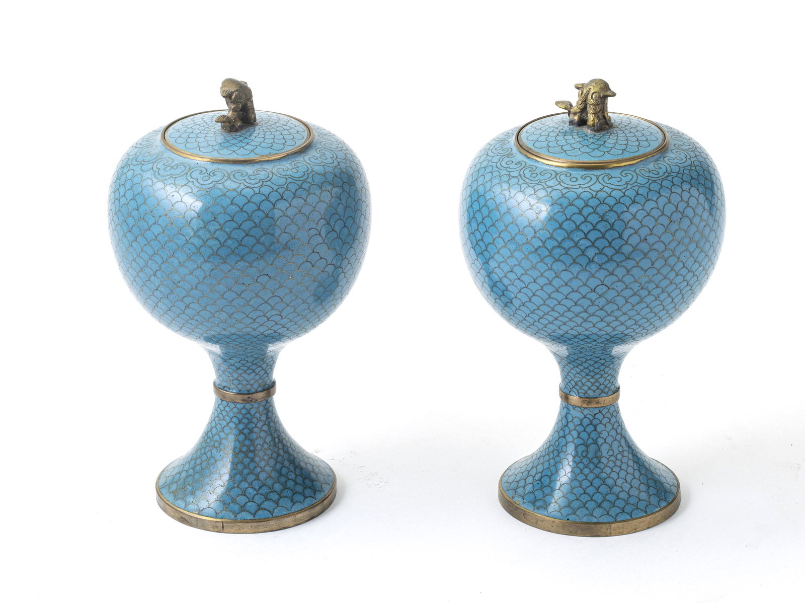 CHINESE CLOISONNE COVERED VESSELS, PAIR