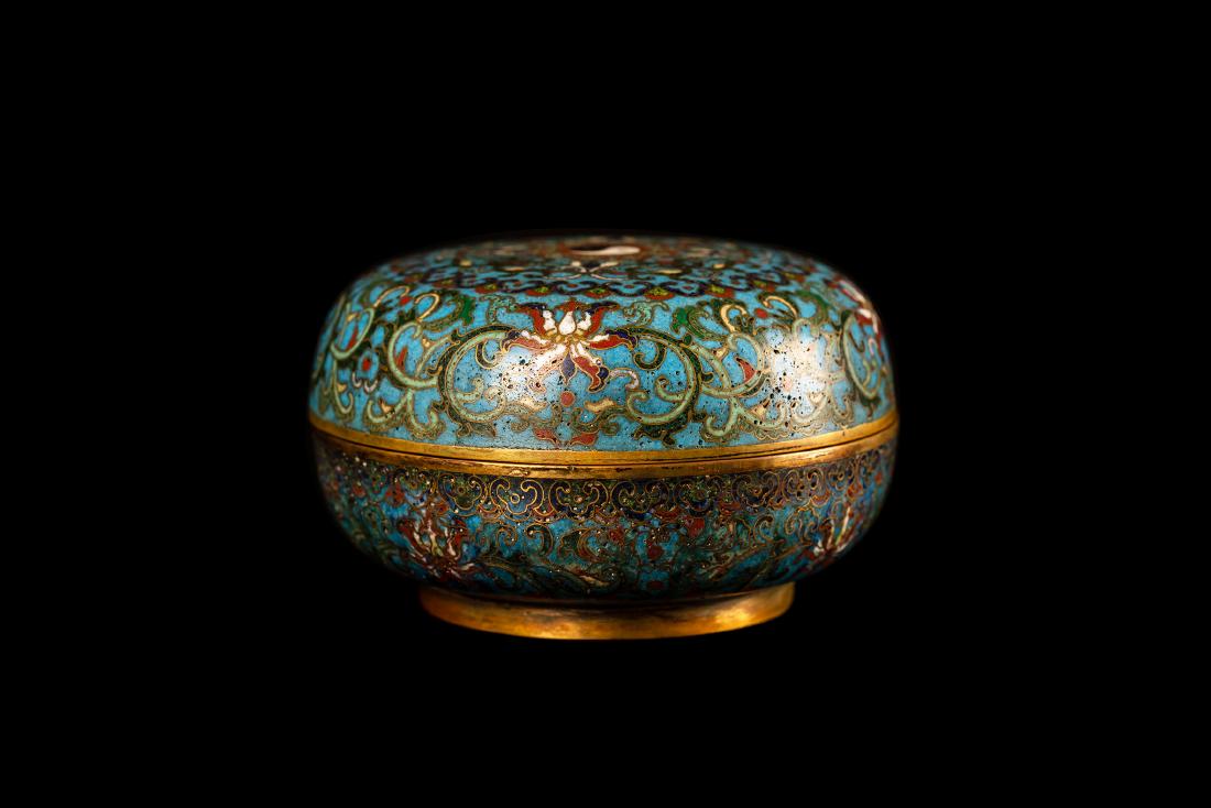 CHINESE CLOISONNE ENAMELLED ROUND BOX.