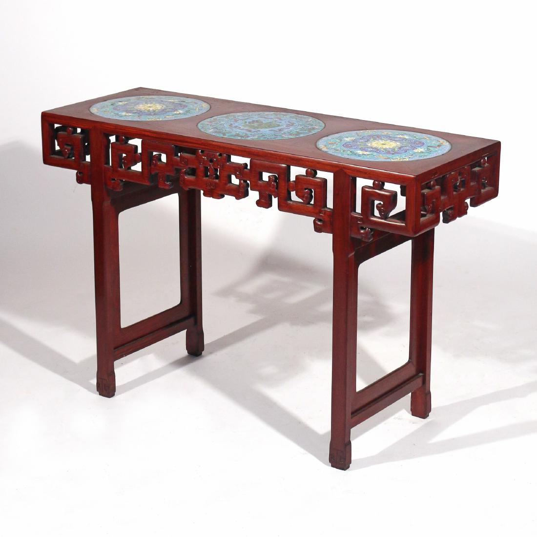 CHINESE CLOISONNE-INSET SIDE TABLE