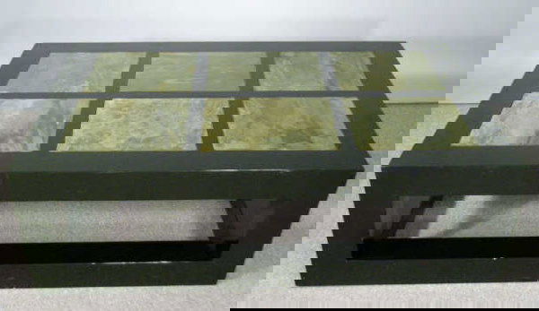 SoldVINTAGE GREEN STONE TOP MINIMALIST COFFEE TABLEVINTAGE GREEN STONE TOP MINIMALIST COFFEE TABLE-17" X 64.5" X26" APPROX-GOOD PRE OWNED CONDITION-DP121922See Sold Price