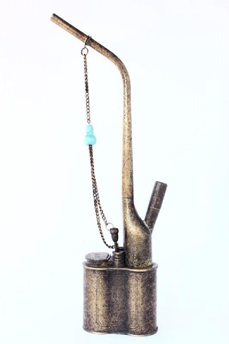 A Chinese White Brass (Baitong) Portable Smoking pipe set stamped GUANGDONGCOAUCTION 4.3(13)$3003 hrs Left