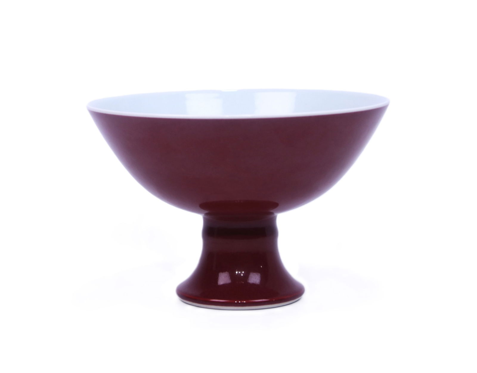 Chinese Copper Red Glazed Porcelain Stem Cup