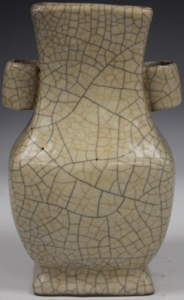 CHINESE CRACKLED PORCELAIN HANDLED VASE