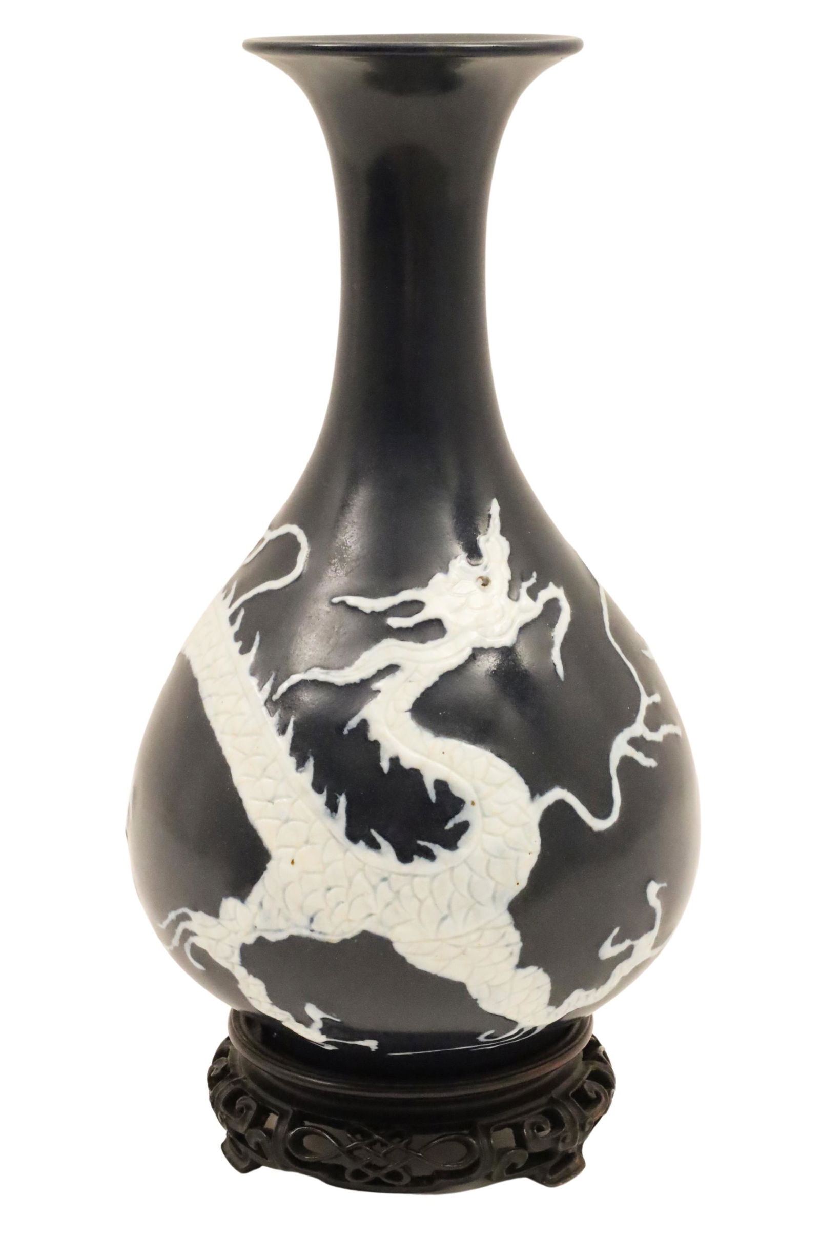 CHINESE DEEP BLUE GLAZE DRAGON VASE