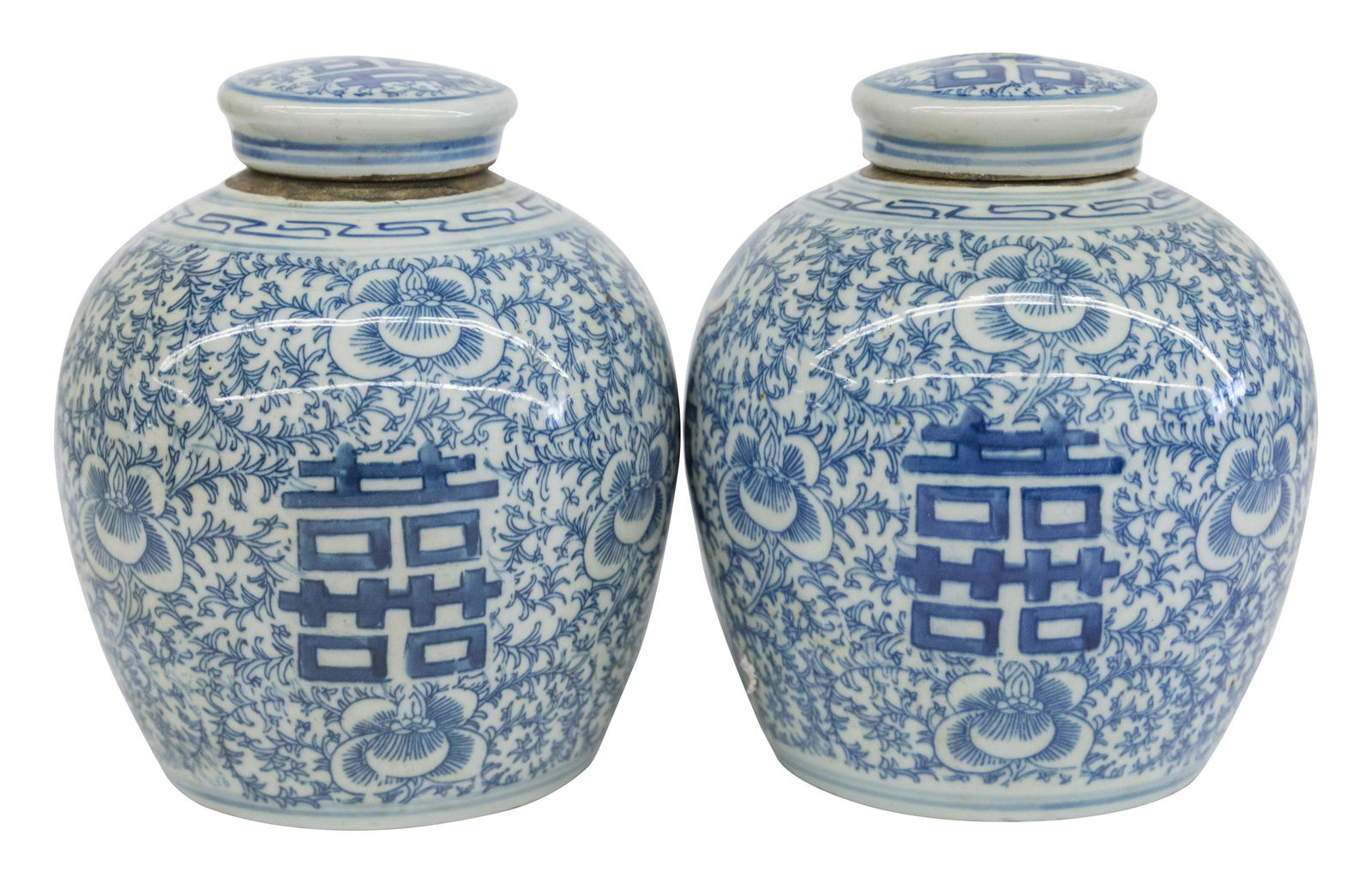 Pr. Chinese Qing Dynasty Blue & White Double Happiness Ginger Jars 18" H X 10" Diam.George Cole Auctions4.6(414)$600(1 bid)5 hrs Left