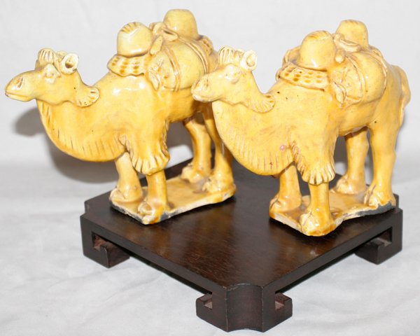 CHINESE EARTHENWARE POTTERY CAMELS, PAIR
