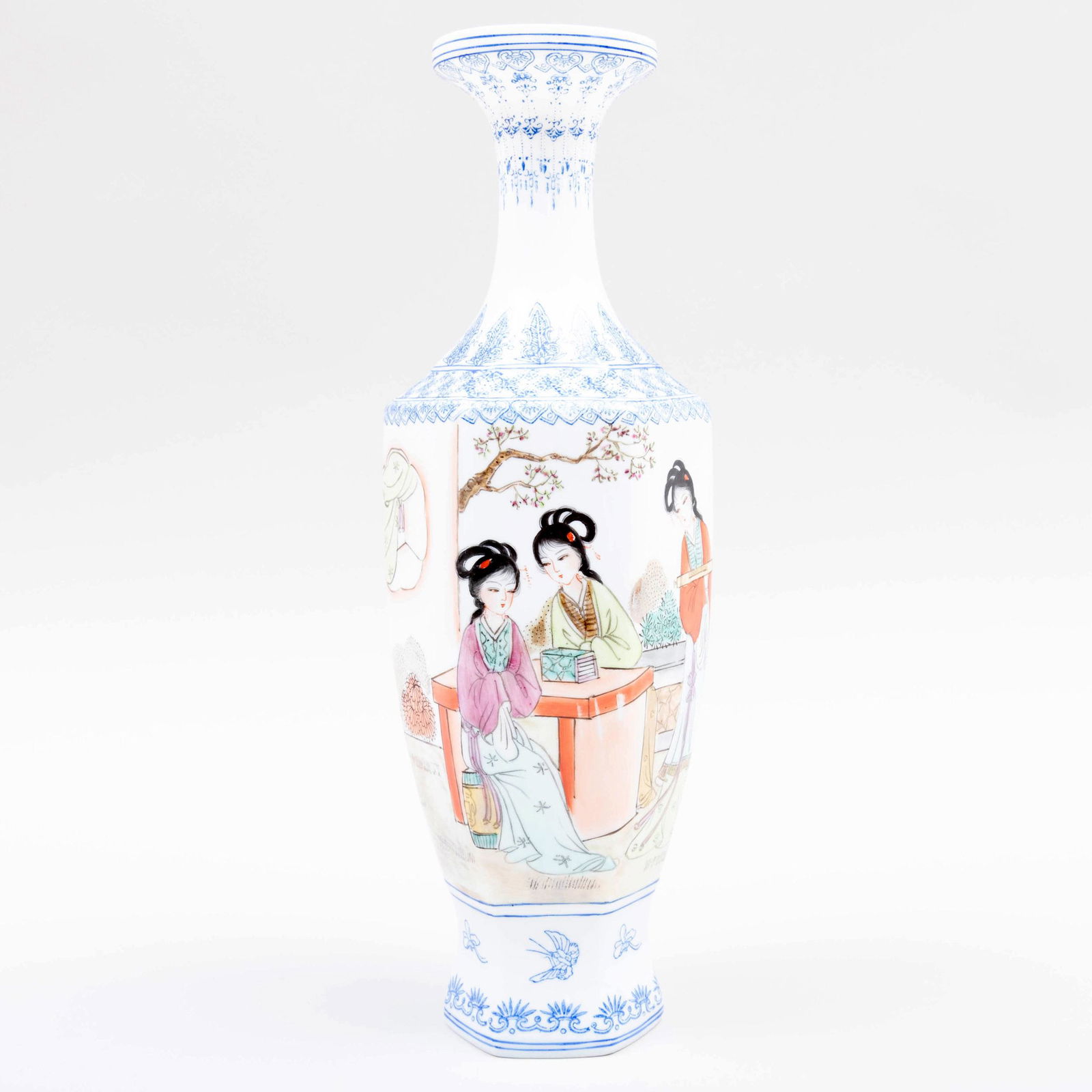 Chinese Eggshell Porcelain Hexagonal Vase with Beauties