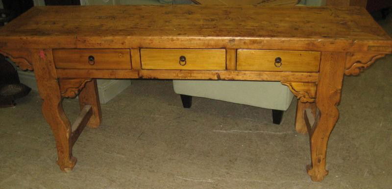 CHINESE ELM WOOD THREE DRAWER CONSOLE