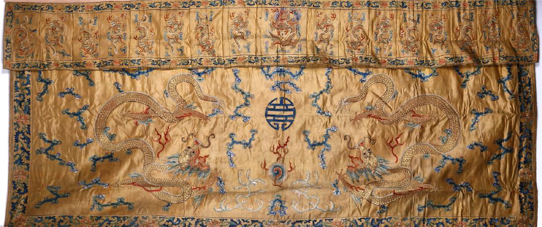 CHINESE EMBROIDERED SILK "DRAGON" TABLE FRONTAL