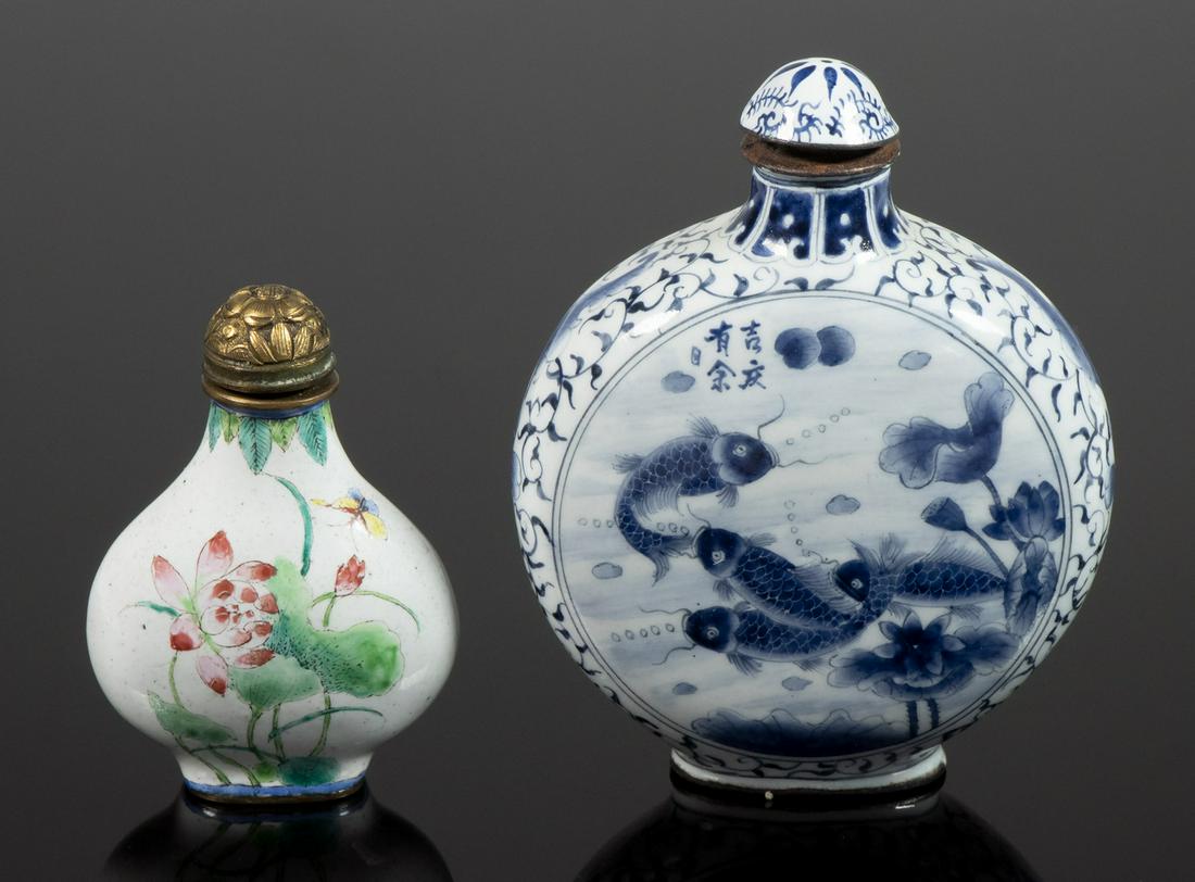 (lot of 2) Chinese blue and white bottles5 days Left(lot of 2) Chinese copper red snuff bottles5 days LeftA lot of three variously decorated and shaped Chinese porcelain vasesFeb 24, 2026Lot of 3 Chinese Cloisonne Enamel Objects, Pair of Vases and Chamber or CandlestickFeb 21, 2026A matching lot of two Chinese porcelain vases, finely decorated in blue and white with copper-red onFeb 24, 2026A lot of two pairs of 20th century Chinese blue and white and Famille Rose style variously decoratedFeb 24, 2026Chinese Gilt Edge Famille Rose Flowers Design Porcelain Snuff BottleTwo Chinese Enameled on Copper Snuff BottlesFeb 21, 2026Two Chinese Blue and White Porcelain Snuff Bottle Qianlong MarkFeb 28, 2026Emperor Qianlong of the Qing Dynasty's Imperial Sky Blue Glazed Cloisonne Maotai Liquor6 days LeftTwo snuff bottles China, 20th century312 Lots Awaypair of Ming Dynasty Xuande blue and white porcelain moon vases with floral and bird motifs and ruyi12 hrs LeftChinese famille rose porcelain snuff bottles Qing dynasty Qianlong Mark & PeriodFeb 25, 2026A pair of Qing Dynasty copper tire cloisonné enamel entwined floral pattern plum bottlesFeb 28, 2026A Group of Chinese Snuff Bottles Qing Dynasty and Later4 days LeftANTIQUE SNUFF BOTTLE / BLUE AND WHITE COPPER ENAMEL QING REPUBLIC OF CHINAFeb 22, 2026