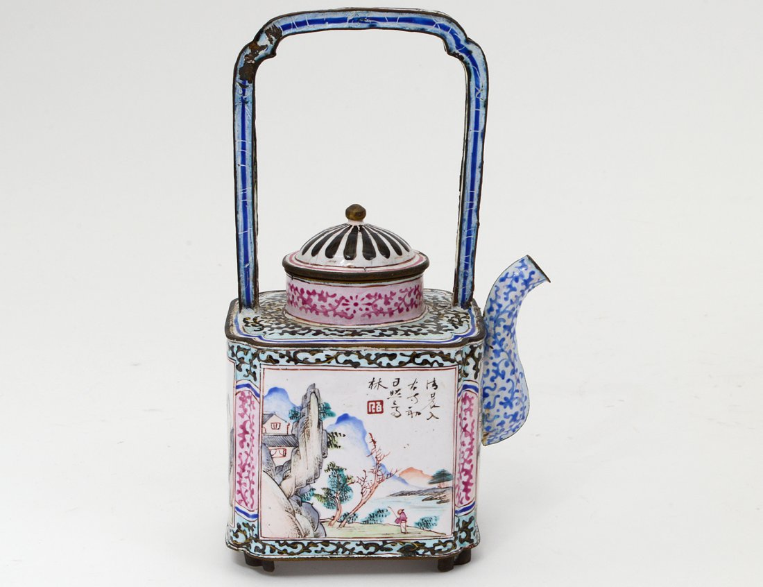 CHINESE ENAMEL PAINTED TIN TEAPOT