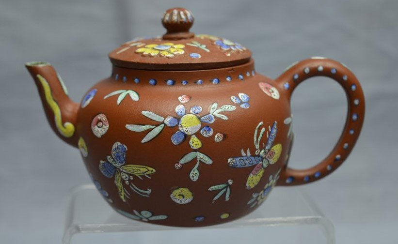 Chinese Enameled Yixing Teapot