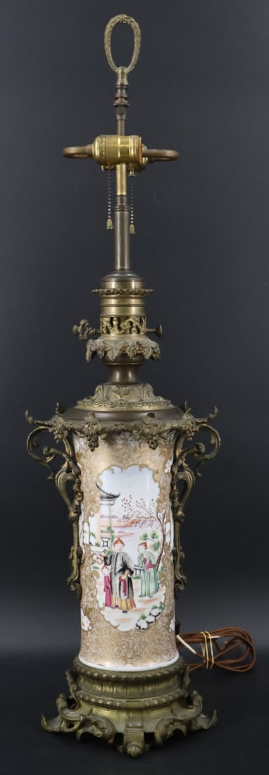 Chinese Export Bronze Mounted Lamp.