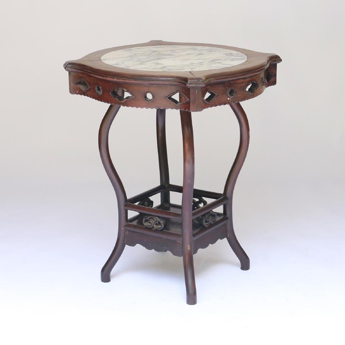 CHINESE EXPORT HARDWOOD & MARBLE SIDE TABLE