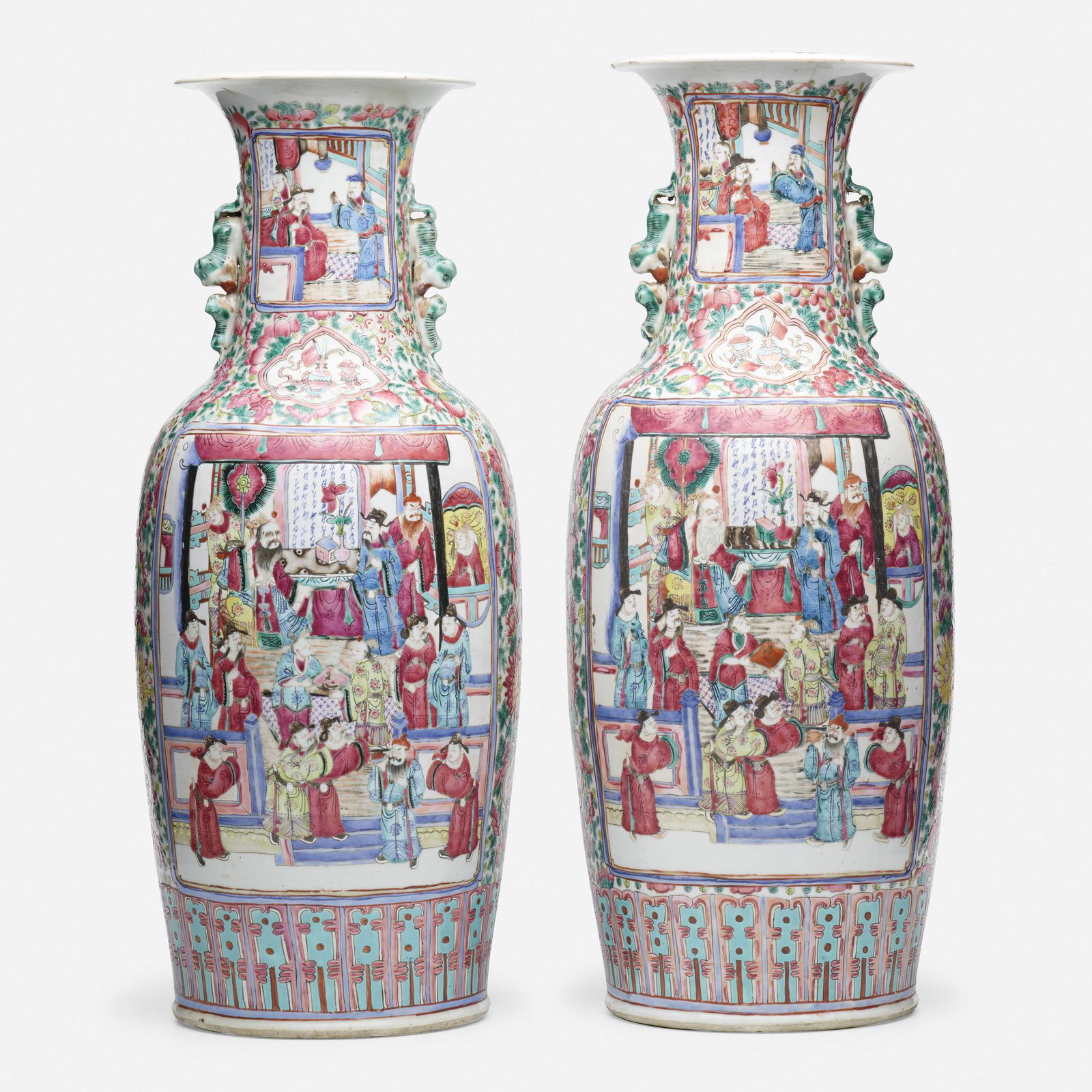 Chinese Export, Large Canton Rose 'Figural' vases, pair