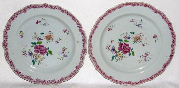 CHINESE EXPORT PLATES, 18TH C., PAIR, DIA 9"
