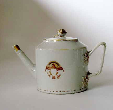Chinese export porcelain teapot, , Drum form with